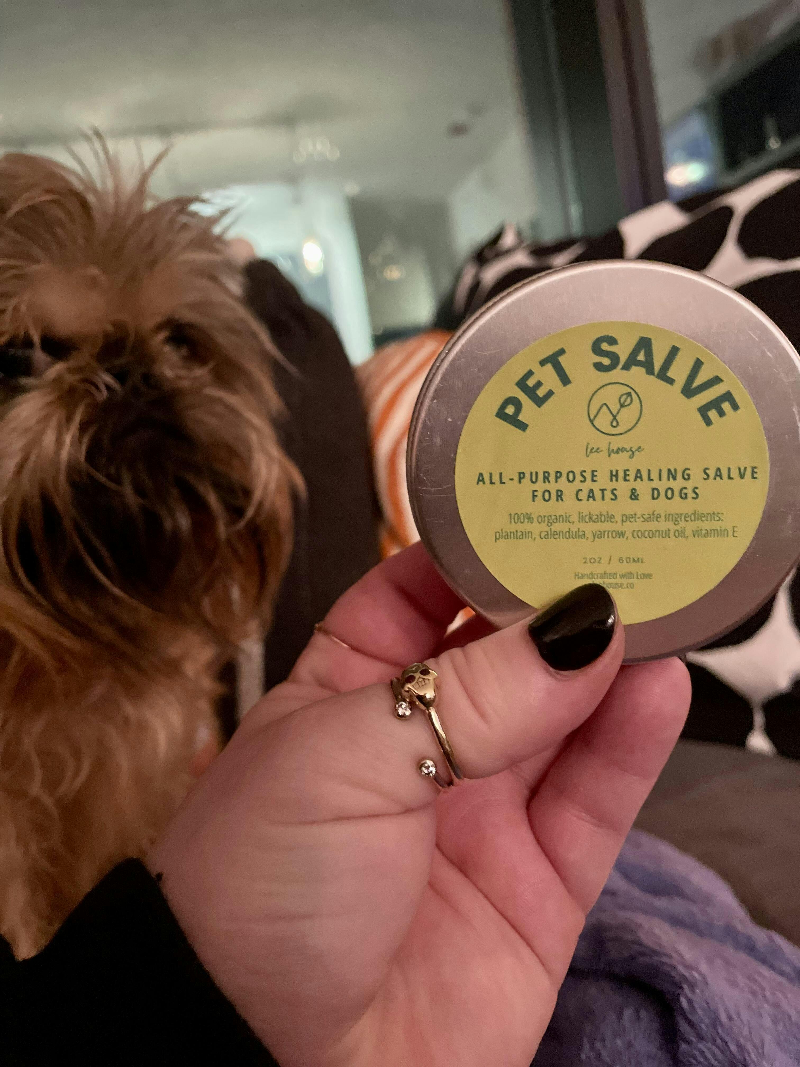 My sweet Brussels Griffon, Bug, LOVES when I rub my Pet Salve on her cute toe beans. The comforting scent and safe likability make it a welcome part of our self-care routine. Super recommend for pets' and parents' paws!