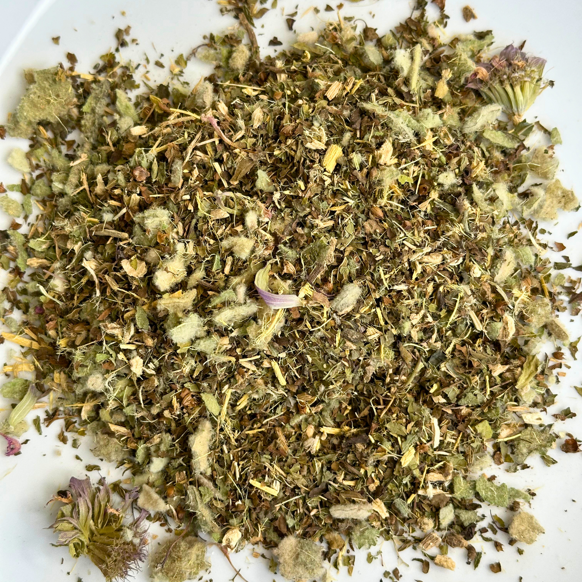 A light, slightly minty infusion with a touch of sweetness and spice. Made with our own hand-harvested mullein leaf and a supportive blend of herbs chosen for their traditional use in herbal teas for clarity, breath, and calm. Naturally caffeine-free.