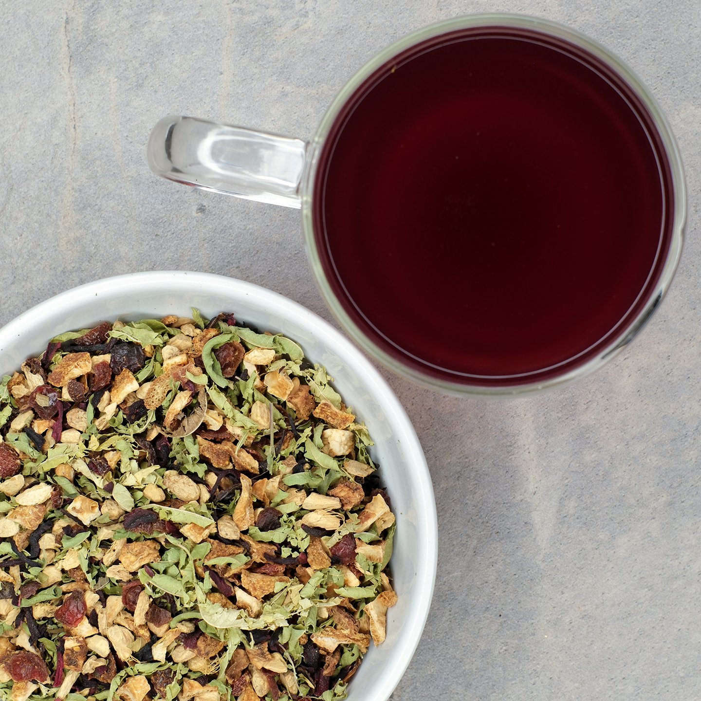 A refreshing, naturally vibrant herbal tea with zesty citrus notes, tart hibiscus, and warming ginger. This caffeine-free infusion is a perfect daily wellness ritual, offering a light, revitalizing sip any time of day.
